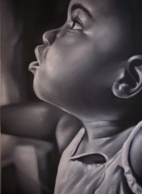 Vi lavede dette fotorealistiske sort-hvide maleri af et barn for en privat klient.